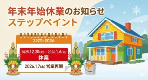横浜市の外壁塗装・屋根塗装専門店ステップペイントの年末年始休業のお知らせ(【2025-2026】)です。誠に勝…
