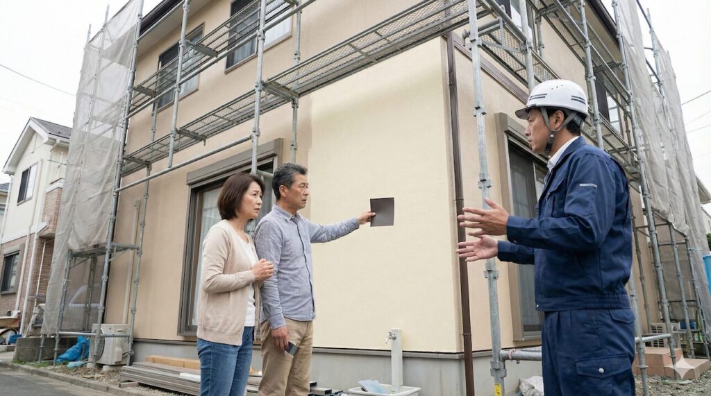 足場が解体される前、あるいは塗装の途中で「あれ?色が違うかも…」と思ったら。まずは一人で悩まず、すぐに現場の職人か営業担当に相談してください。これが鉄則です。