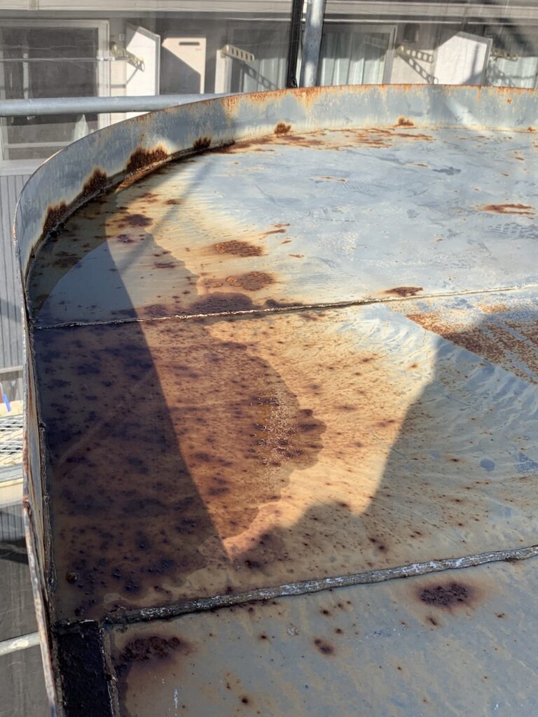 外壁面積は約235m2で、庇部分の補修や鉄骨階段のサビ対策も必要な状況でした。この診断結果を基に、オーナー様へ最適な補修計画と塗料をご提案させていただきました。