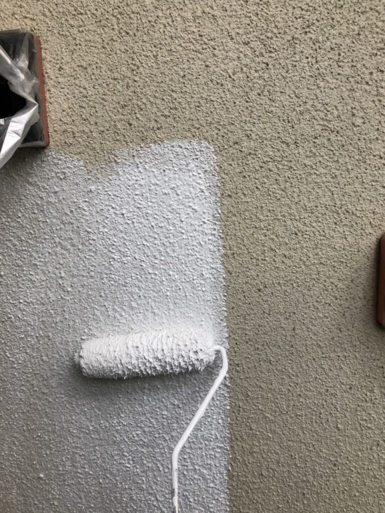 次に、劣化したシーリングを撤去し、新しいものに打ち替える下地処理を行います。そして、塗装工程では「下塗り」「中塗り」「上塗り」の合計3回塗りを厳守しました。